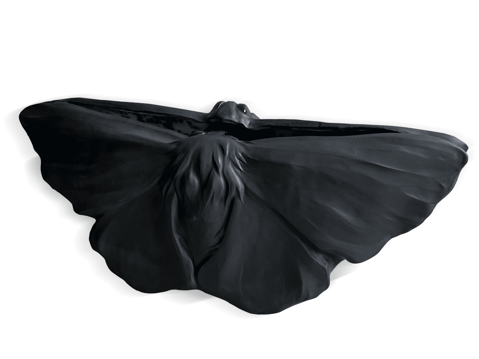 Объект Маши Лам, в котором природный образ бабочки становится функциональной формой. Изобразительность и прямая фигуративность здесь работают как способ рассказа: ваза воспринимается не только как предмет, но и как часть повествования.