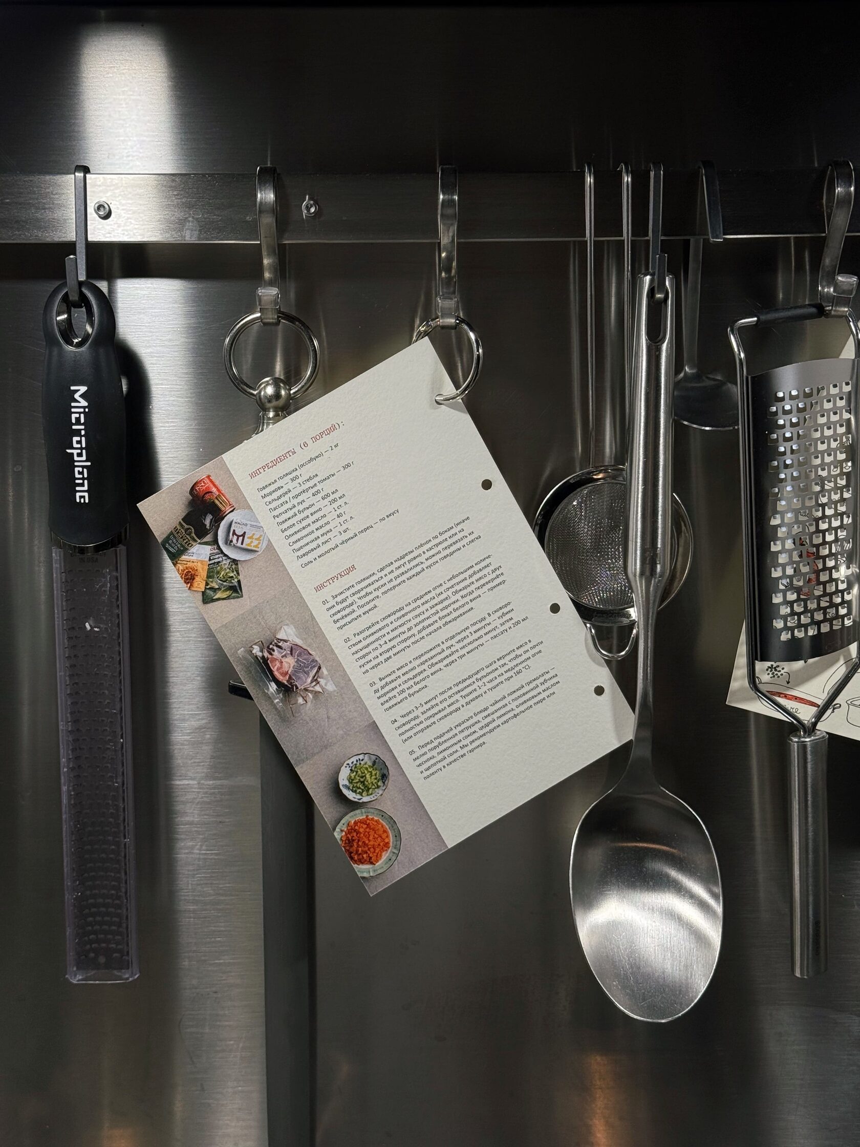 • 2 металлических кольца — для подвешивания рецептов или отдельного хранения;