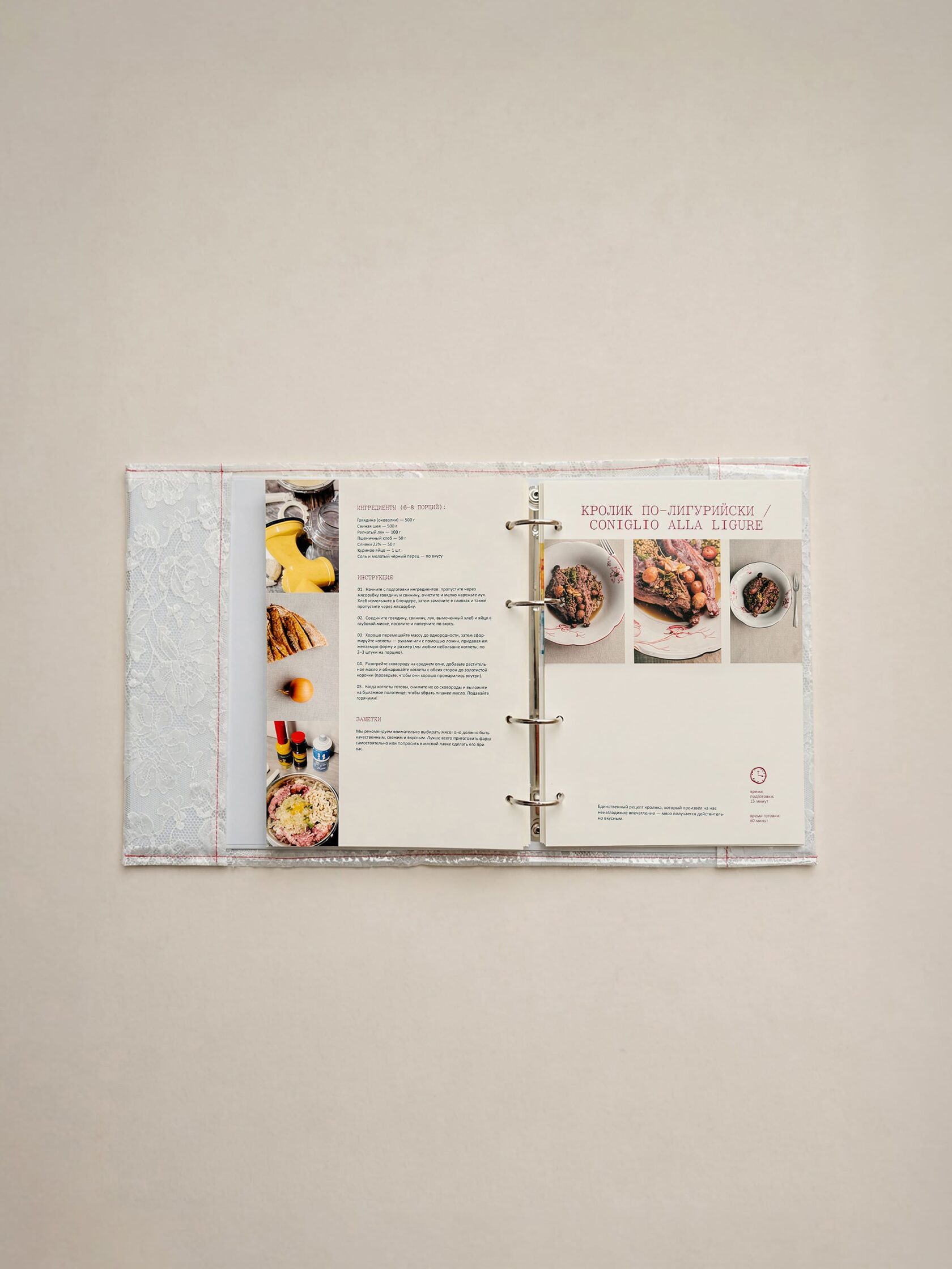Формат на кольцах выбран специально: рецепты можно менять местами, вынимать, добавлять новые, дарить по одному в конверте друзьям, дописывать свои — использовать так, как удобно именно вам.