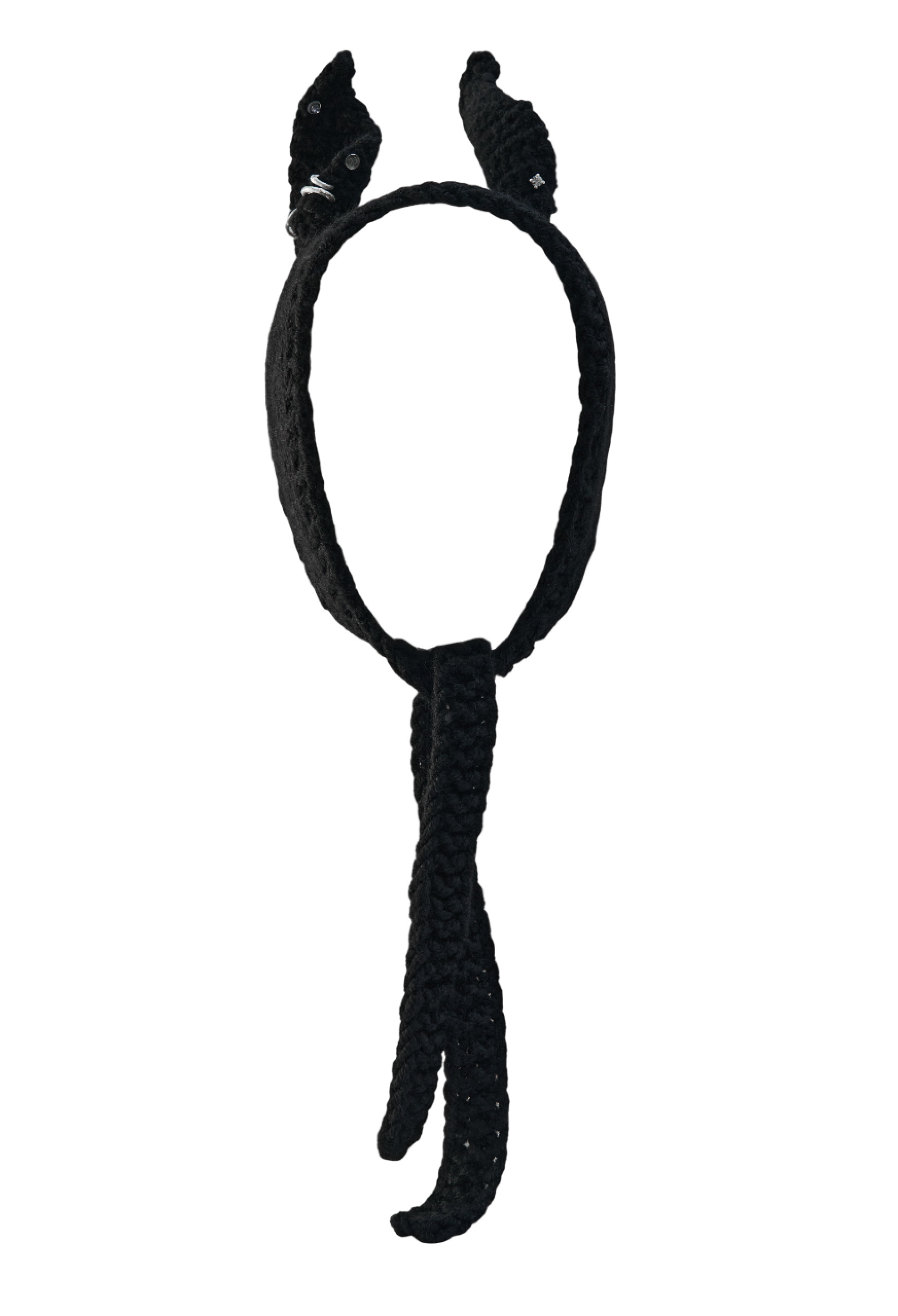 Самоирония и легкость — кажется, нам всем иногда не хватает этого. Может быть, поэтому (и потому что стиль!) я решила связать уши добермана — это 160 часов кропотливой ручной работы мастера. Я пошла в задумке и дальше, поэтому на ушах вы найдете пирсинг от бренда Alexander Karpinsky. На одной из сережек шарм «ноль» — не столько начало отсчета, сколько символ пустоты или чистого пространства, место потенциальной реализации и возникновения чего угодно. Сережки можно носить не только в ушах добермана, но и в своих. Сет из 5 украшений выполнен вручную.