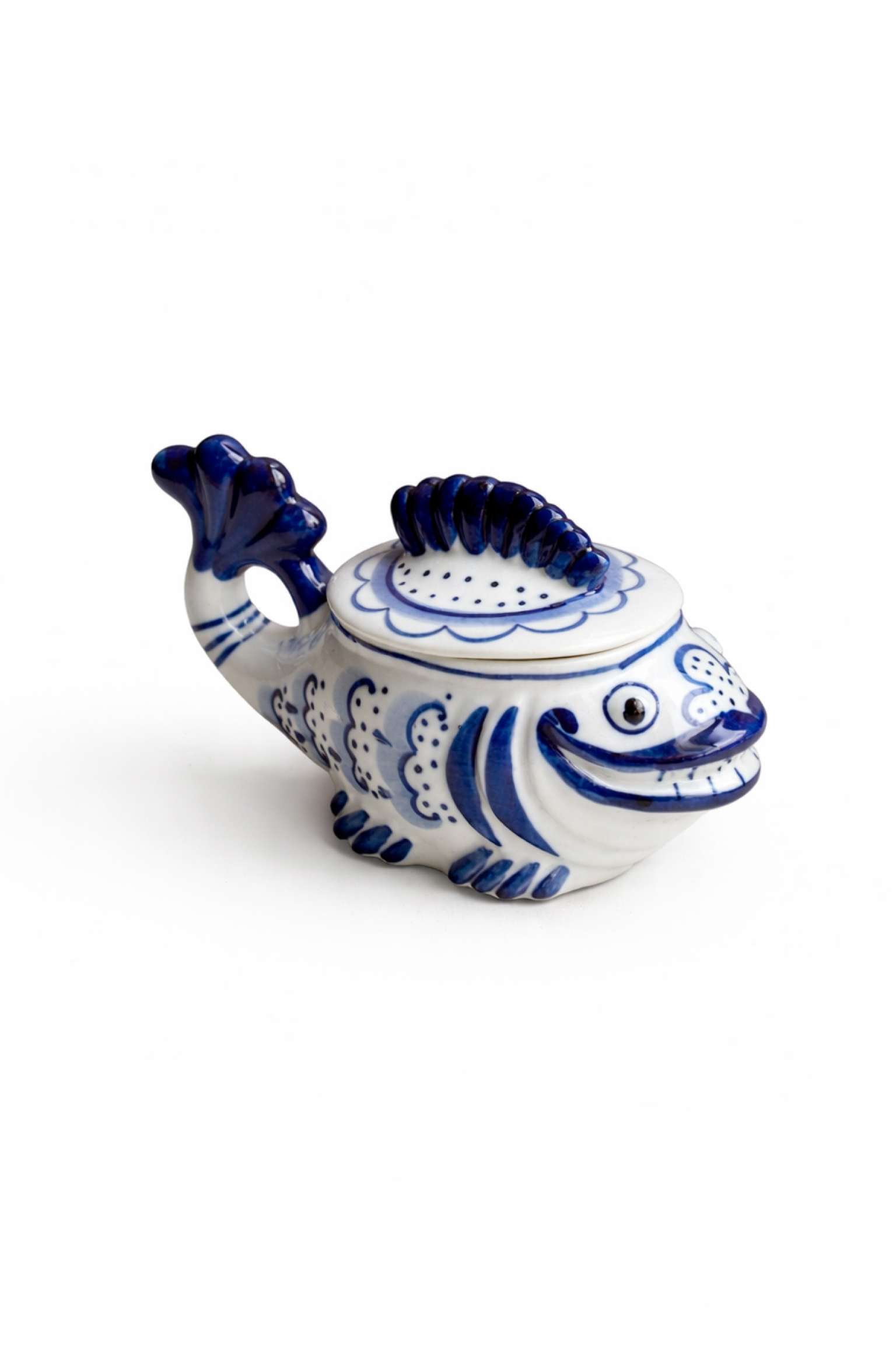 Икорница «Рыба с зубами» с крышкой, Гжель