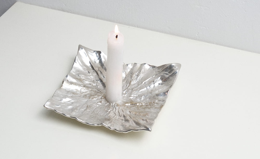 Этот подсвечник напоминает собой раскрытую фольгу трюфельной конфетки — продолжение подсвечника Wrap.