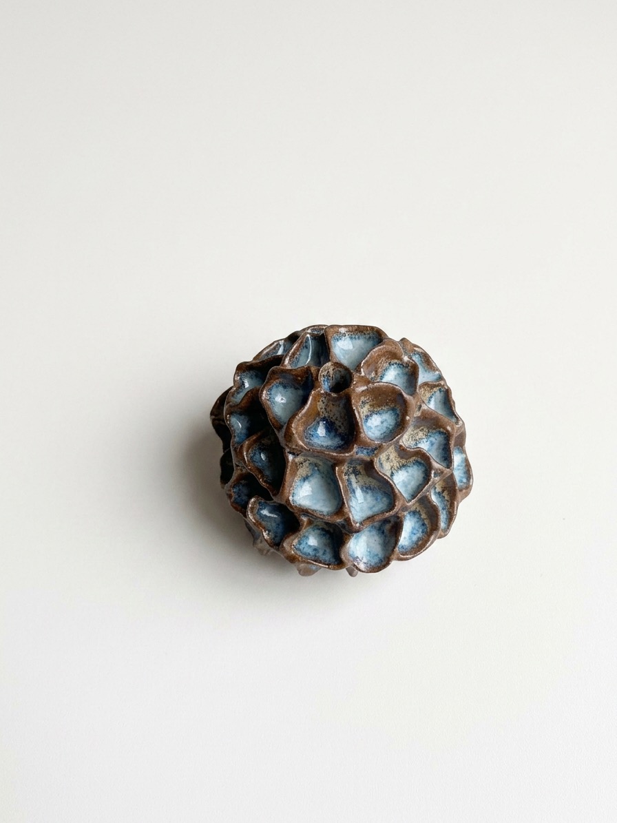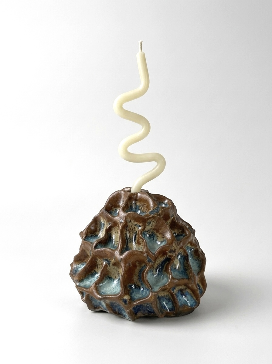 Коричневый подсвечник из серии «МОХ». Подсвечник для тонких свечей или благовоний. Создан в авторской технике. Каждая лунка вручную лепится художницей. Серия подсвечников «МОХ» фиксируют память прикосновения, подобно мху, который на мгновение сохраняет след касания. В состав глазурей, которые используется на подсвечниках, добавлено винтажное советское стекло, создающее непредсказуемые эффекты за счет своего химического состава.