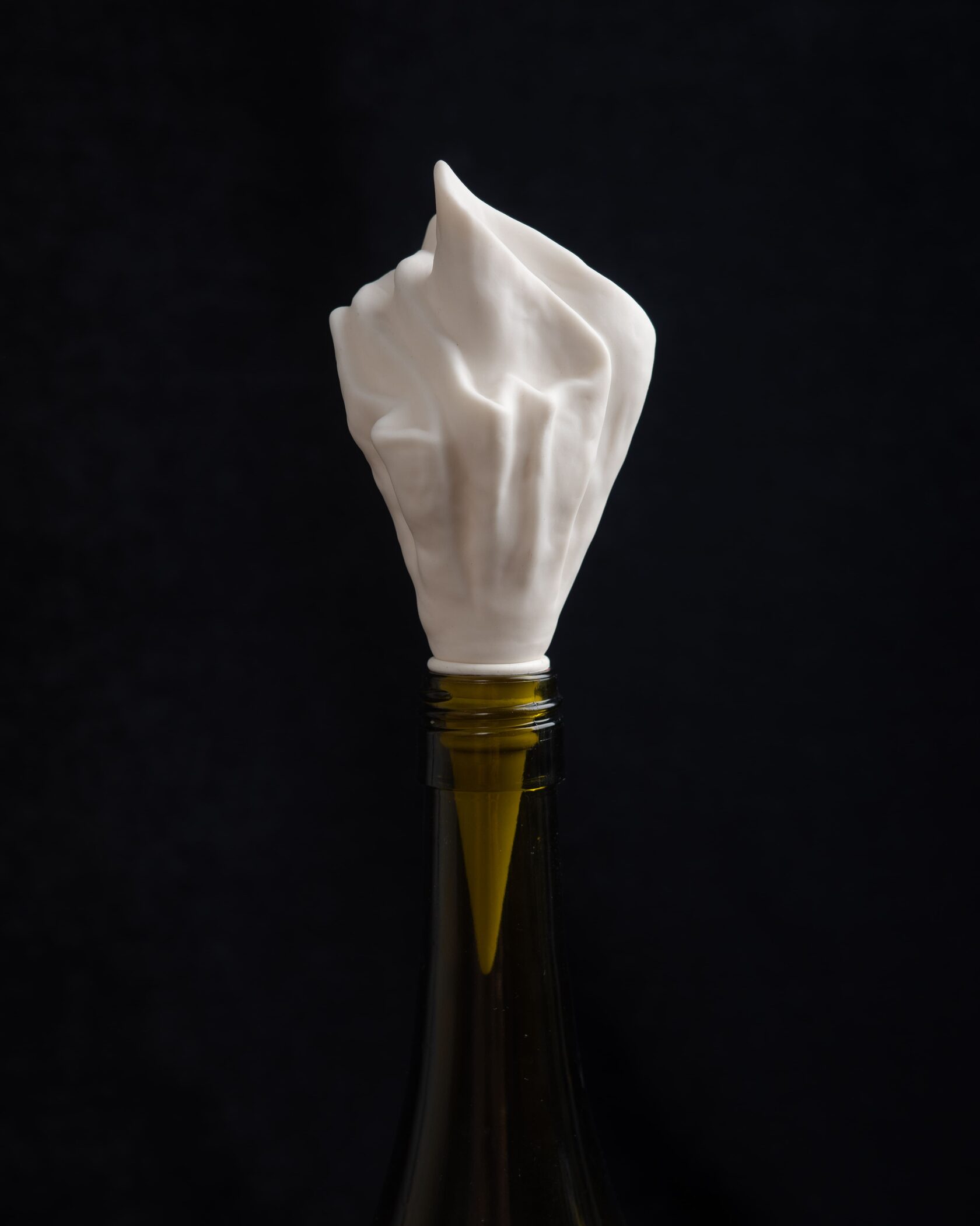 Когда не хочется допивать, а пробки под рукой нет — остаётся только скрутить салфетку. Мы поймали этот распространённый жест и воплотили в фарфоре.