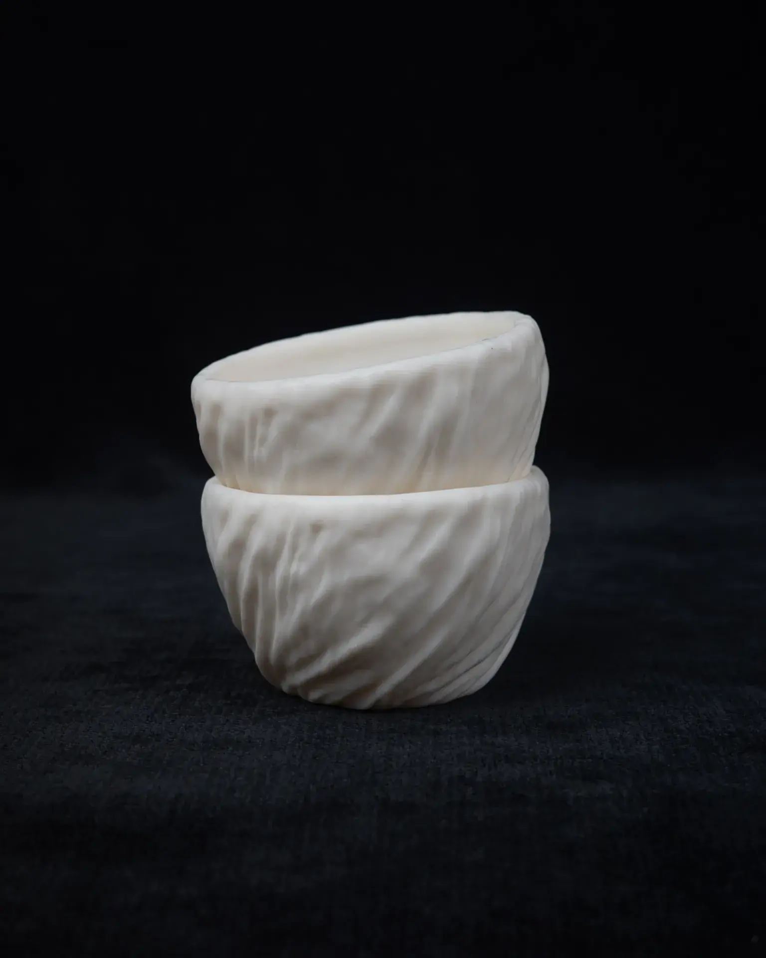 Стопка, пиала, чашечка, стаканчик — называйте как хотите это что-то объёмом около 80 мл. Этот объект задуман как небольшая стопка, плотно завёрнутая в тонкую тишью.