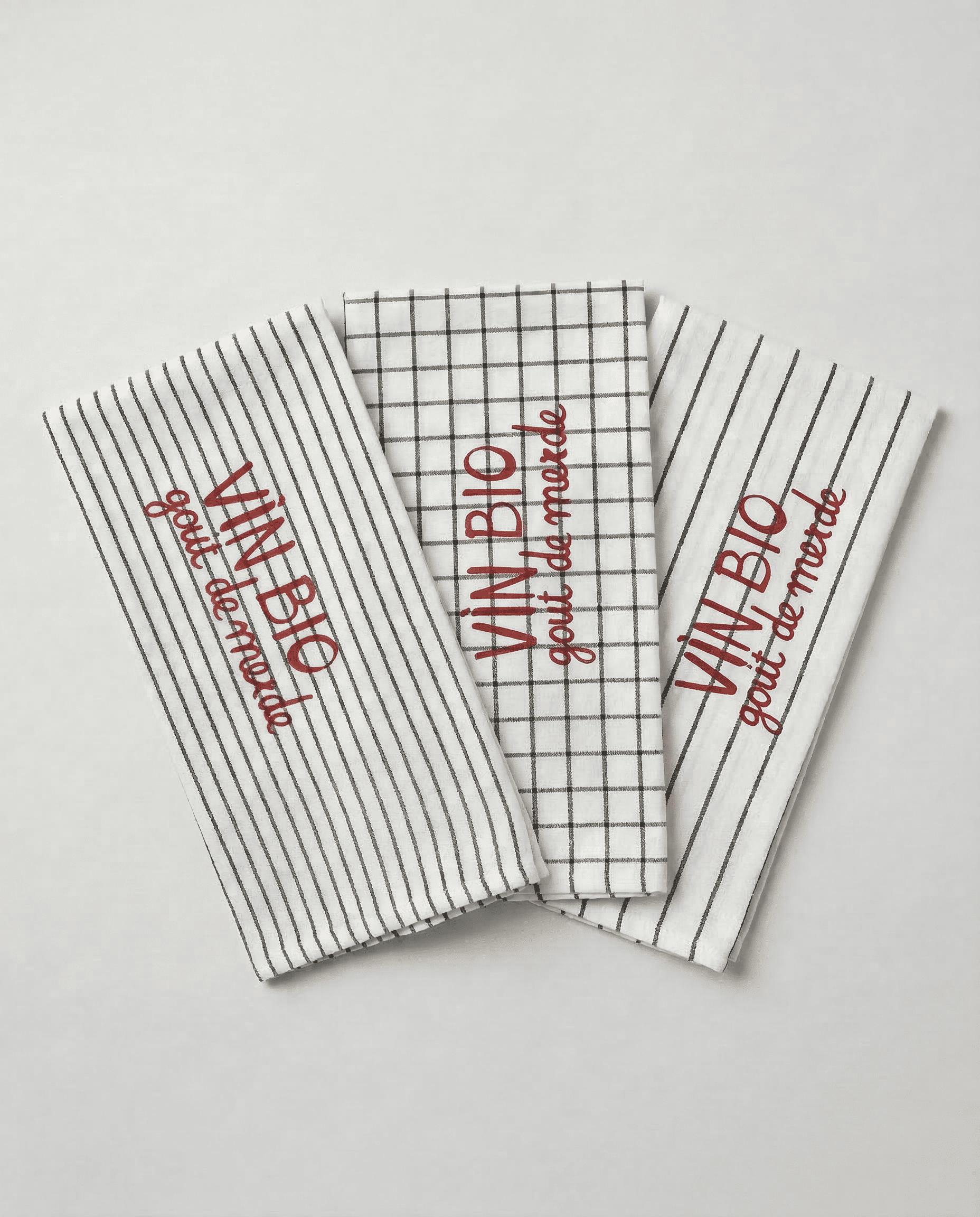 Можно использовать по назначению, а можно повесить на крючок для создания атмосферы. Полотенце, которое делает кухню немного красивее, даже когда на ней полный рабочий хаос. Надпись взята со стены винного бара в бургундском городке Арбуа, где тусуются одни из лучших виноделов Франции. Переводите сами!
