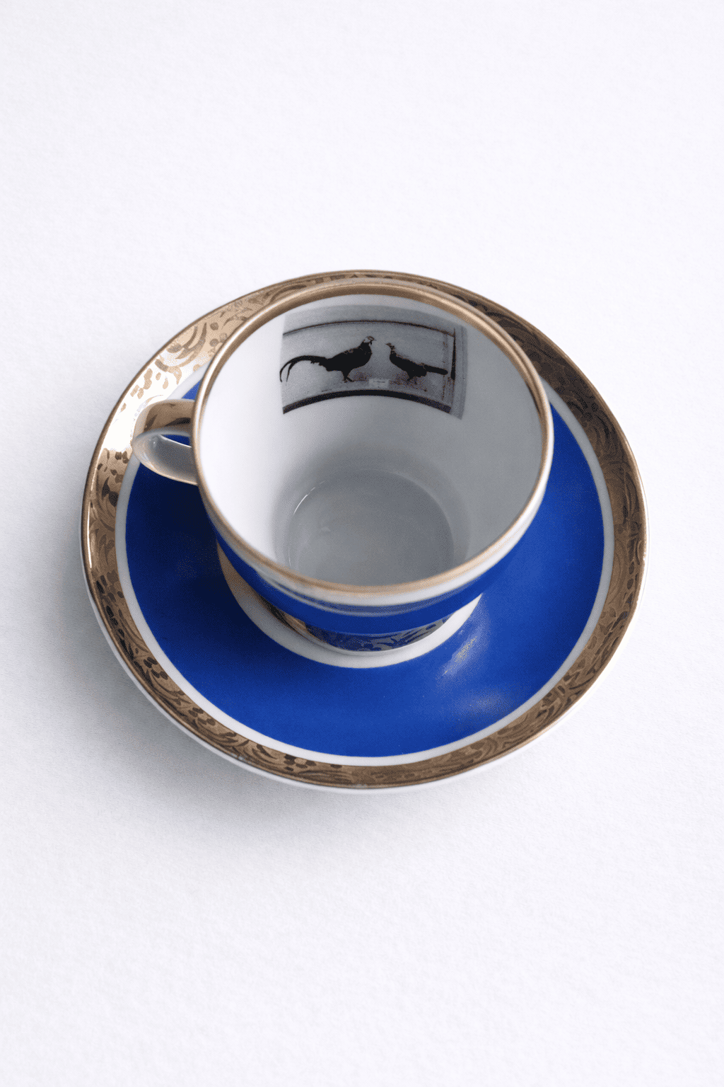 Винтажная пара ярко-синего цвета с фотографиями птиц и гор, уникальный предмет доступен в единственном экземпляре. Воспоминания перенесенные на фарфор.